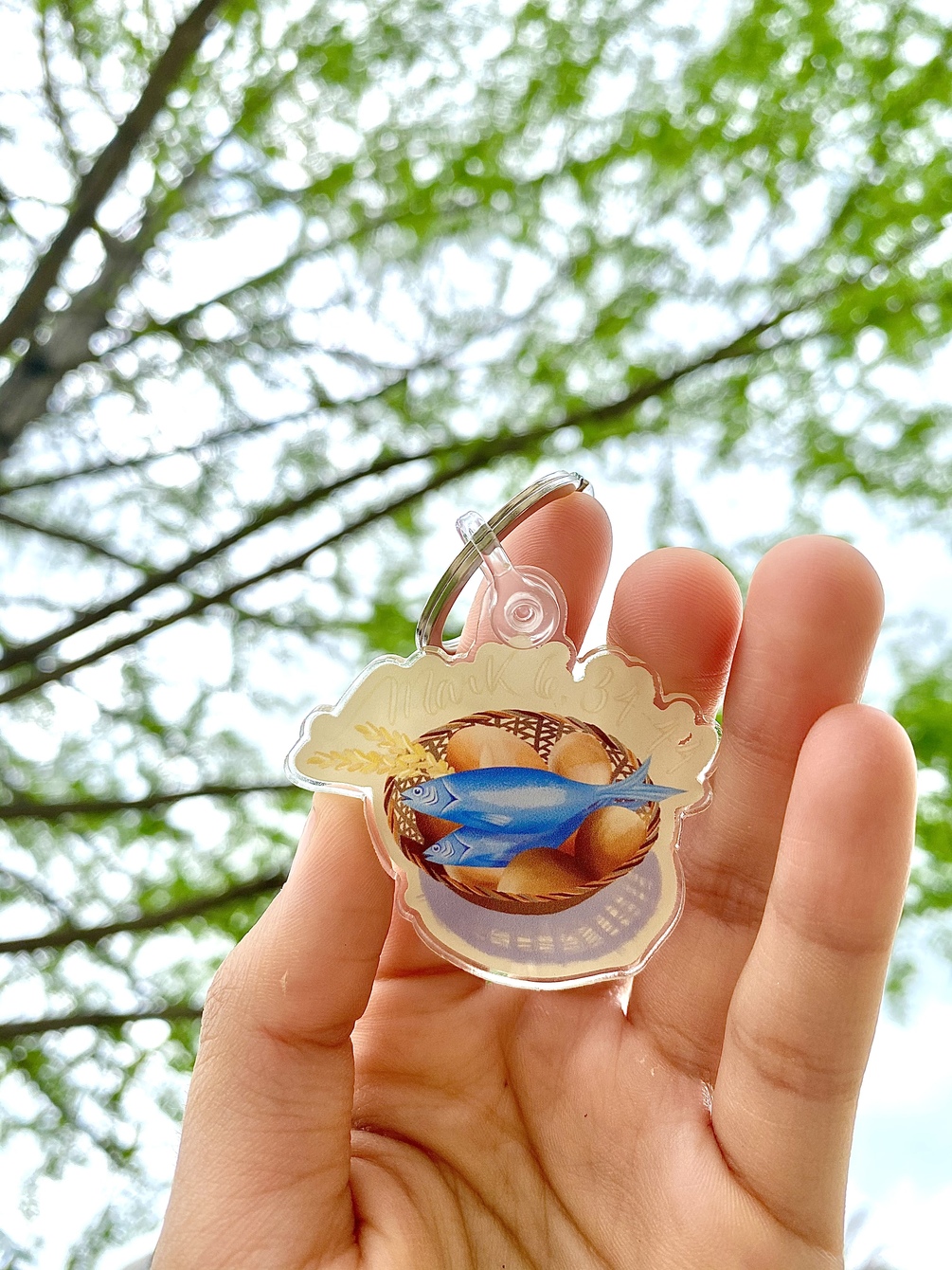 Beautiful keychain inspired by the story of Jesus multiplying fish and bread in Mark 6, 34-44.
